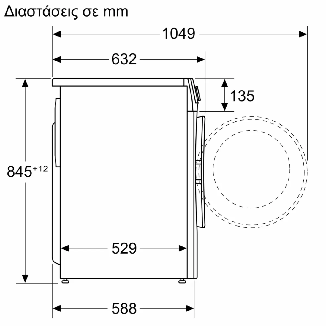 | Depth with door open (90°) | 1049 mm | |