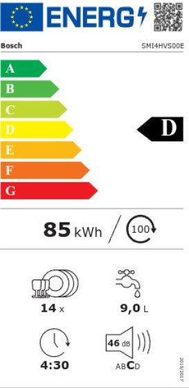 BOSCH SMI4HVS00E Series 4 Semi Integrated Dishwasher with Visible Front 60 cm Brushed Steel