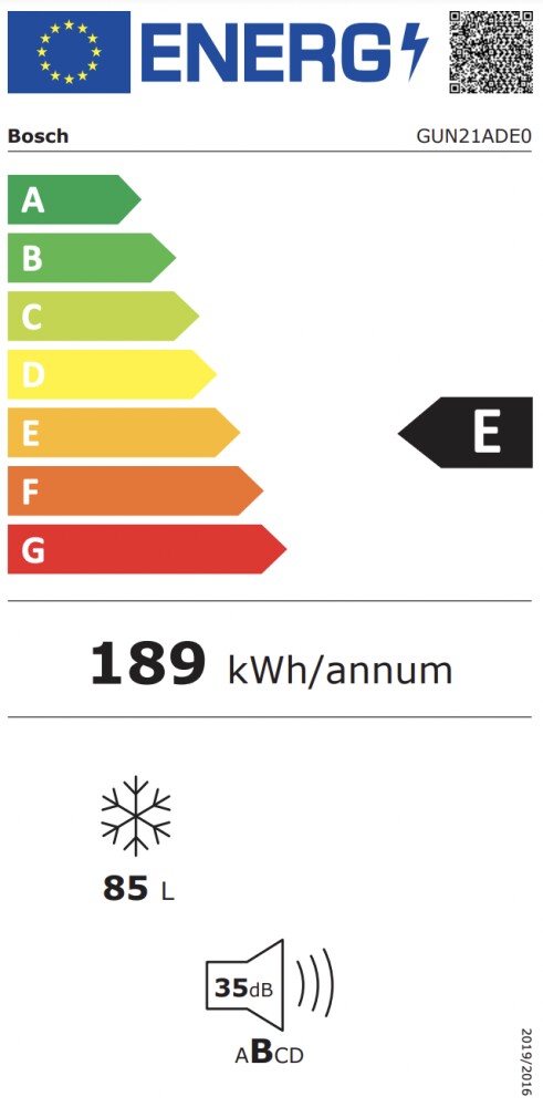 BOSCH GUN21ADE0 Series 6 Built-In Undercounter Freezer 82 x 59.8 cm Soft Close Flat Hinge