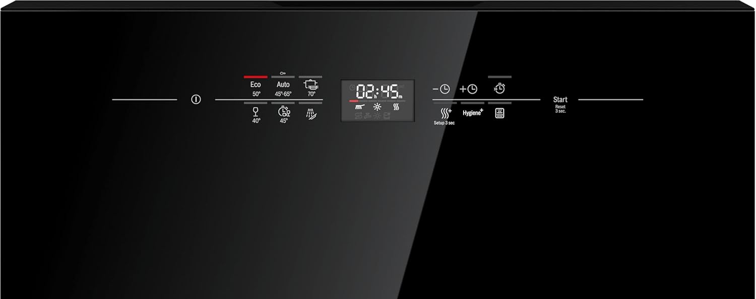 | Special Features | Touch-Control, Program sequence display, Remaining time display, Start time delay (24h), AutoPowerOff, AquaStop, Child safety, Refill indicator (salt & rinse aid), Optional hot water supply, Plastic floor |
